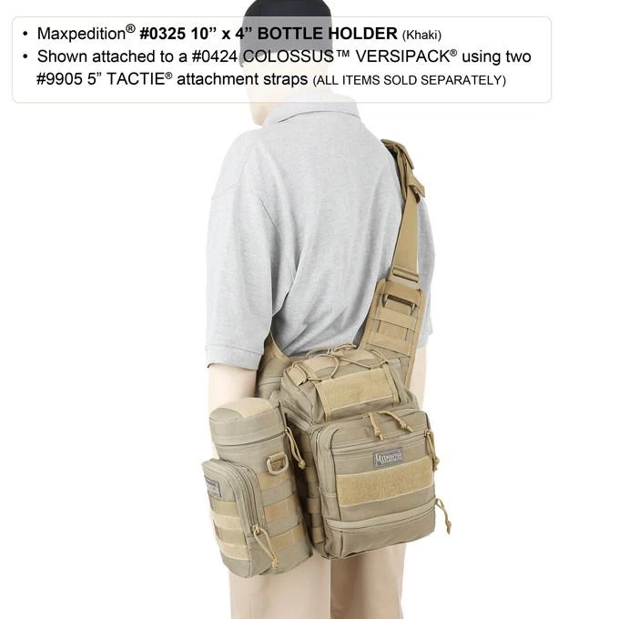 Padded bottle holder fits a 32oz / 1L water bottle or camera lens.