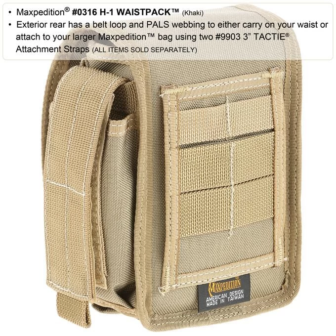 - Wear on belt or attach using two (2) 3″ TacTie® Attachment Straps (sold separately)