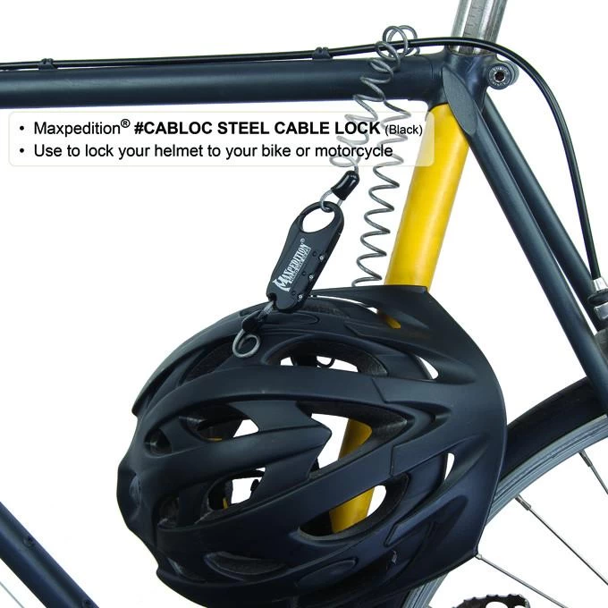 The Steel Cable Lock is made of a steel coiled rope with a smooth plastic covering, and it is flexible for ease of use. The cable is difficult to sever because steel fibers will mash flat making cutting difficult. An easy push lever allows you to attach and detach the cable from the lock quickly. Great for your bike, motorcycle, luggage, or gun cases.